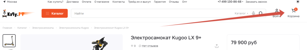 1. Нажмите на кнопку «В корзину» справа от изображения товара: